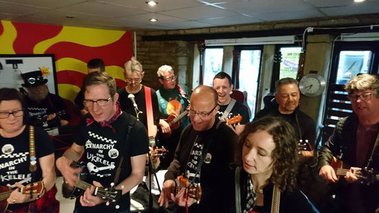 "Anarchy in the Ukelele" can provide a fun introductory level Ukulele workshop of songs at your festival or event .
